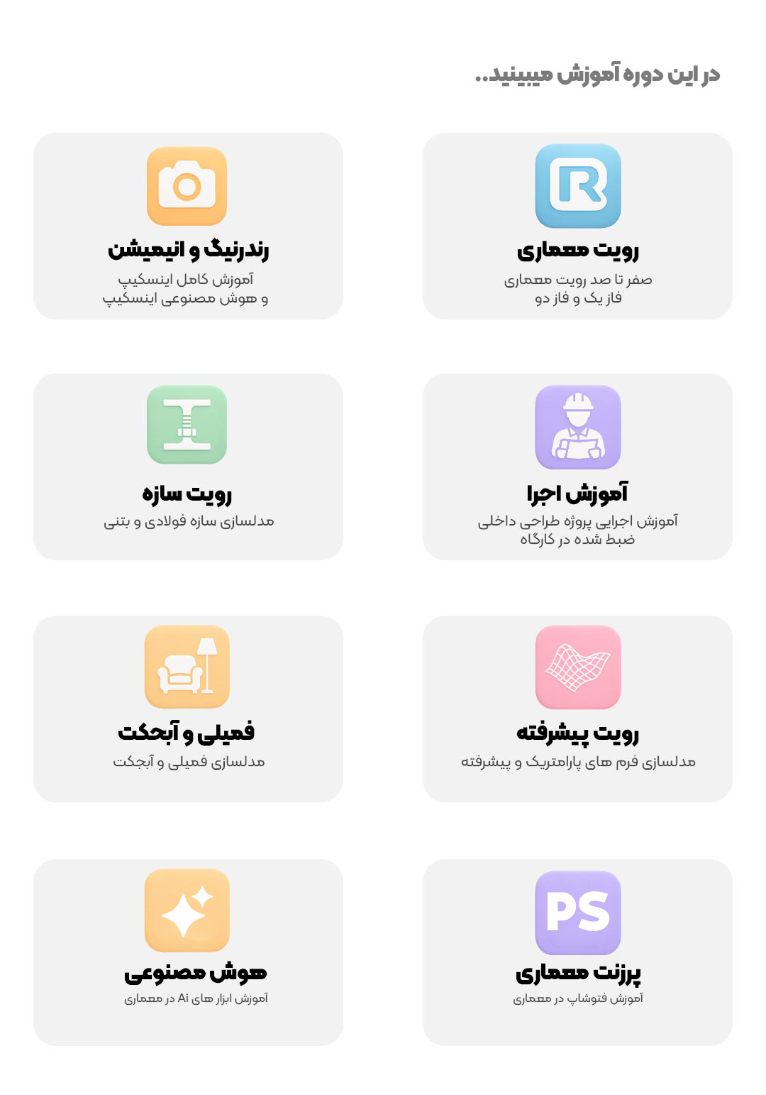 این دوره کاملاً کاربردی و پروژهمحور، مسیر یادگیری شما را از مفاهیم پایهای نرمافزار رویت تا مهارتهای پیشرفتهای همچون مدلسازی تخصصی، ساخت فمیلی، طراحی سازههای بتنی و فلزی، نما و شاسیکشی هموار میسازد. با بهرهگیری از متدهای مدرن آموزشی و تجربهای ارزشمند در آموزش معماری، این دوره دستیابی به بالاترین سطح توانمندی در Revit را برای شما تضمین میکند.